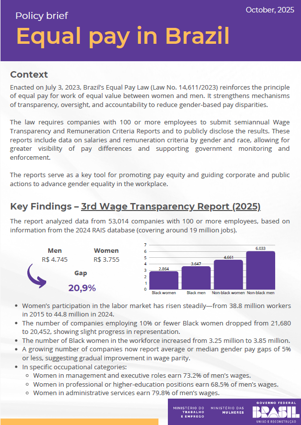 Law 14,611 of 2023 and its impacts on the work situation of women - an infografic provided by Brazil's Subsecretariat of Labor Statistics and Studies